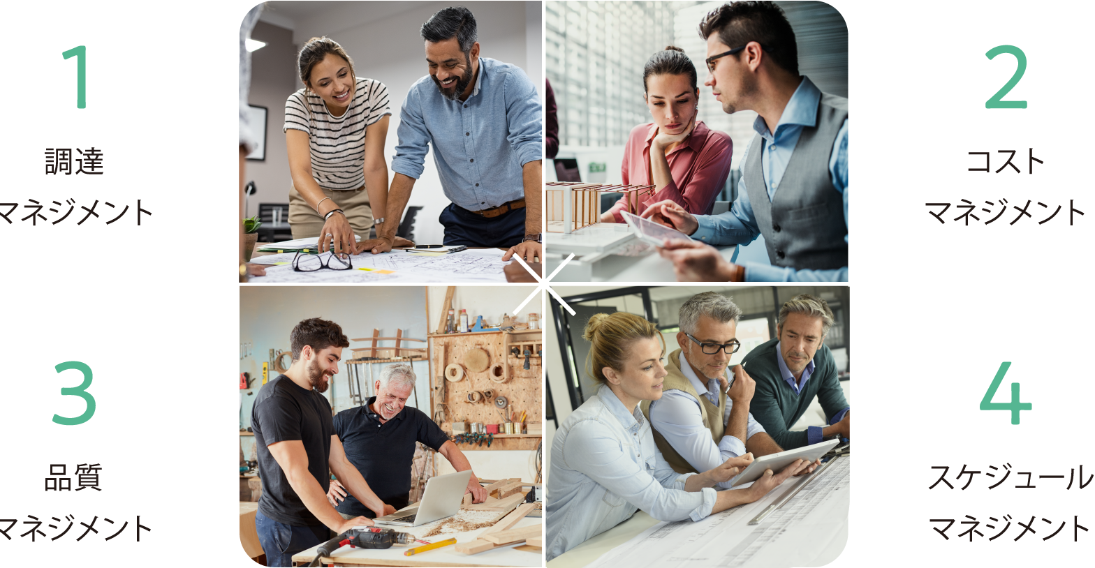 CMrは各専門業者より工程に関するヒヤリングを行い、全体工程表を作成します。それをベースに全ての専門業者と調整を図り、全体工程表を作成します。個々の業種における工程については、それを担当する専門業者が調整を図りますが、他の専門業者が絡む時は、CMrによる調整が必要になってきます。